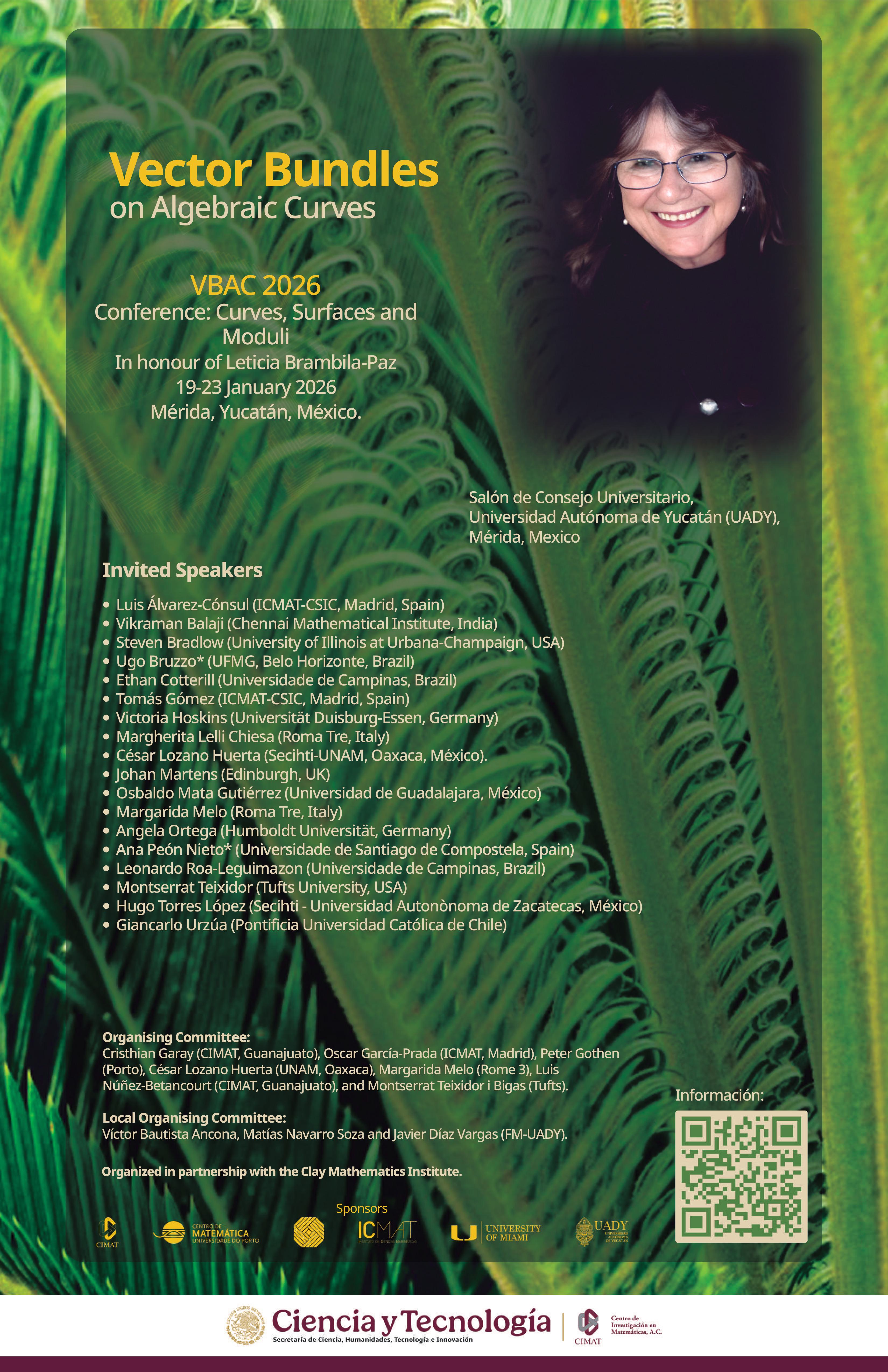 Dates: January 19-23, 2026 The conference “Vector Bundles on Algebraic Curves (VBAC) 2026: Curves, Surfaces and Moduli” took place January 19–23, 2026 at Universidad Autónoma de Yucatán in Mérida, Mexico. The meeting brought together leading researchers and early-career mathematicians working in algebraic geometry, particularly in areas related to vector bundles, moduli spaces, and the geometry of algebraic curves. The Institute of Mathematical Sciences of the Americas (IMSA) at the University of Miami provided travel support for selected participants attending the conference. IMSA’s support helped facilitate international collaboration and enabled researchers to participate in discussions and presentations at the meeting. IMSA is committed to supporting research activities that strengthen connections between mathematicians across the Americas and promote the exchange of ideas within the global mathematical community.